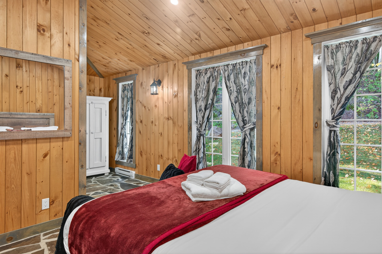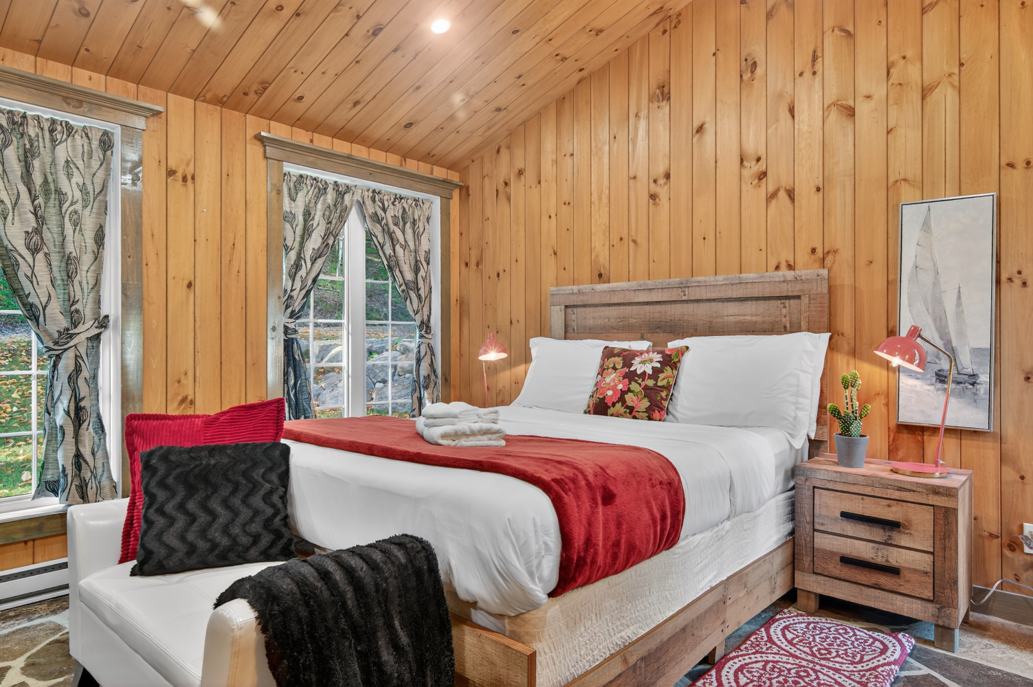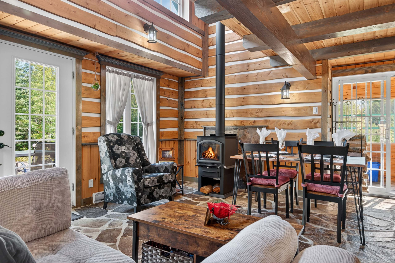 N'hésitez pas, prenez un temps d'arrêt pour vous afin de vous ressourcer. Votre chalet possède toutes les commodités nécessaires afin que votre séjour soit parfait. Une salle de bain complète et une salle d'eau dans la chambre du 2e étage. Cuisine toute équipée, laveuse-sécheuse, lave-vaisselle, balayeuse centrale, BBQ, foyer intérieur et extérieur, terrasse et meubles patio, cuisinette d'été avec moustiquaire etc...