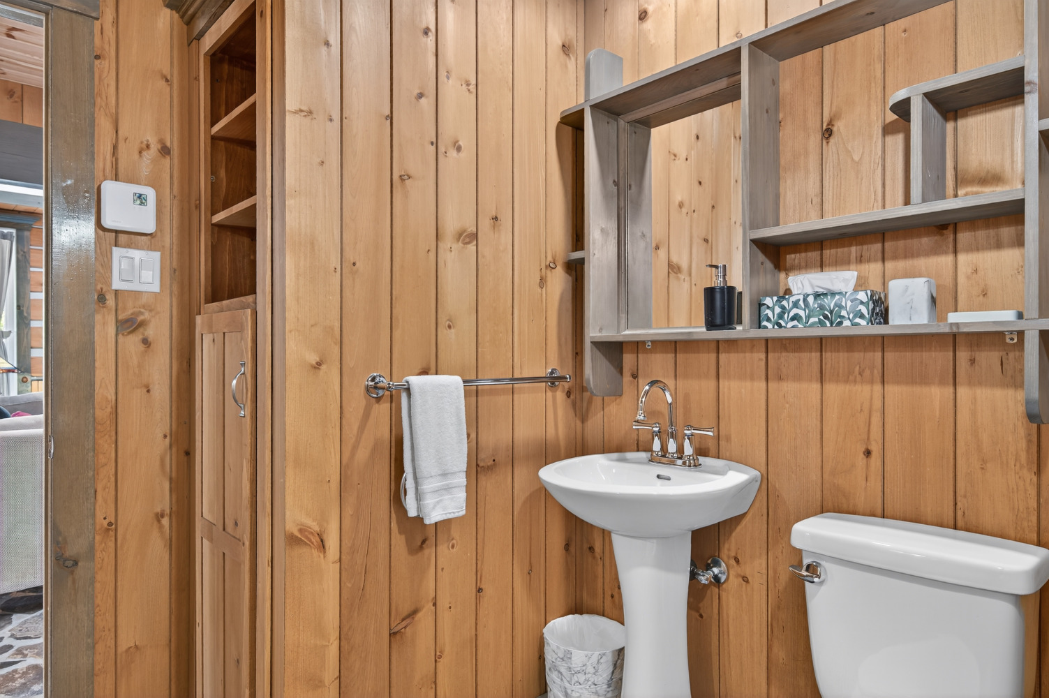 Dans la salle de bains :