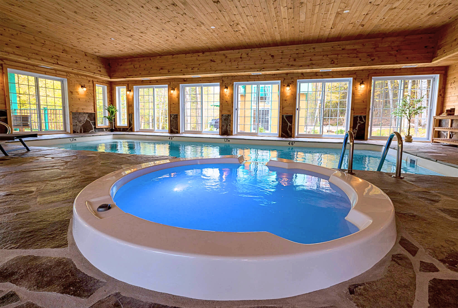 Une baignade dans la rivière Sacacomie, vous donner peut-être la chance de voir une famille de canards, ou admirer l'élégance des chevreuils qui nous font l'honneur de nous visiter régulièrement Et enfin, des lits douillets et confortables, une superbe baignoire directement dans la chambre et le son de la rivière vous offrira un sommeil réparateur et vous redonnera un nouveau regain de vie. Donnez-vous la chance de prendre contact avec la nature tout en profitant du plaisir d'être entre amis.